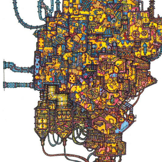 Details that draw you into his world of buildings, bridges and dreamlike structure.