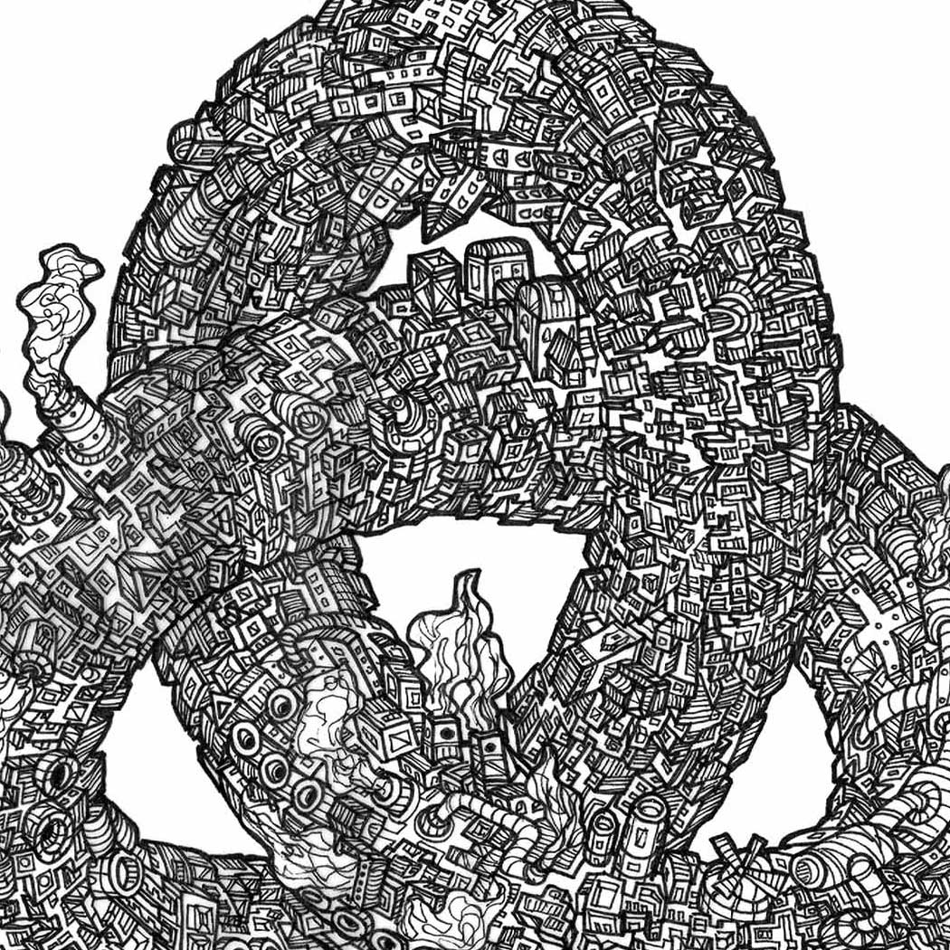 Inspirerad av St Knuts torg i Malmö låter han staden bokstavligen knytas samman. Byggnader, gator och minnen vrider sig in i varandra tills allt blir en enda sammanhållen form.