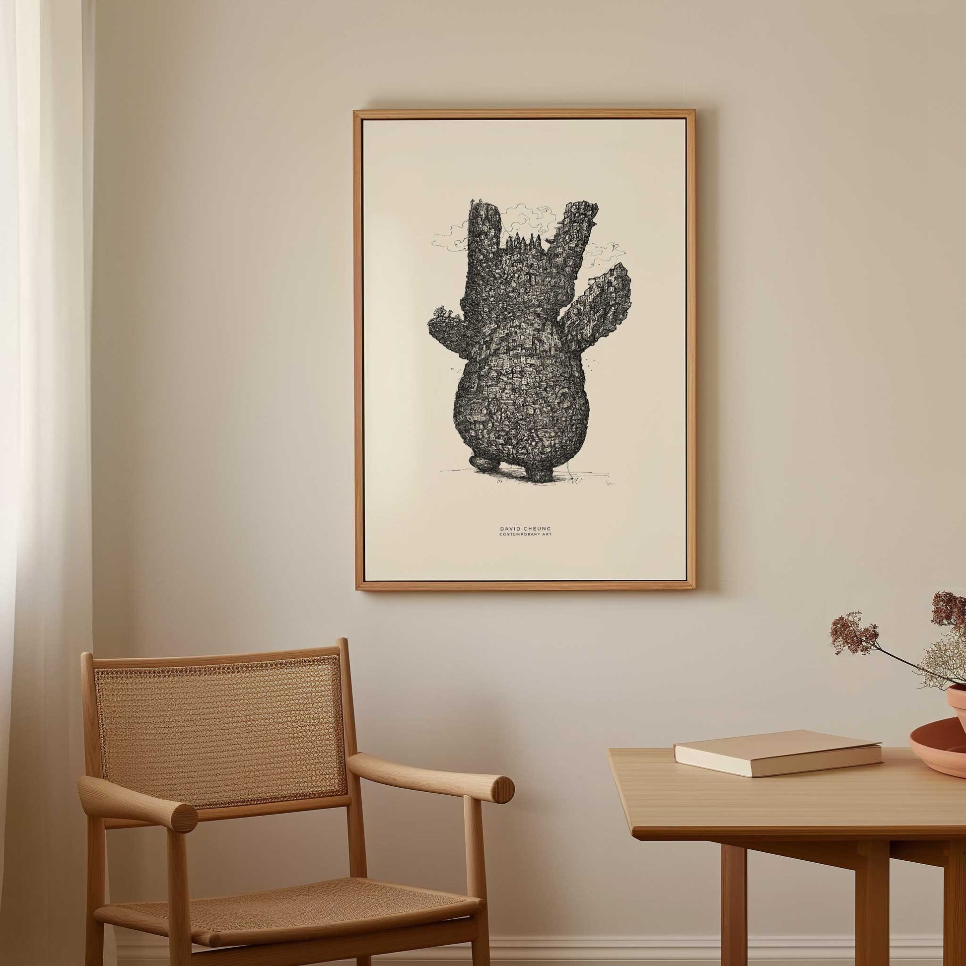 "Ebbe" is inspired by David's dog's beloved toy, which in his art world has been transformed into an entire city. Here humor, imagination and memories meet - a tribute to the small things in life that can hold entire worlds. Printed on premium matte paper"