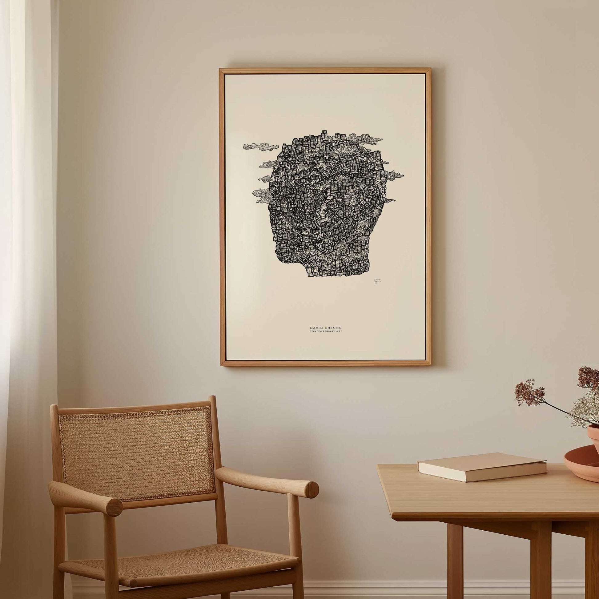 "Thinking Head" is a detailed work of art where a whole world of small buildings form a human head. For David, creation is a way to find peace - drawing buildings helps him think and dream away. The work also invites the viewer to stop, immerse himself in the details and let his thoughts wander. Printed on 200 mg premium paper. Available in several color variations!