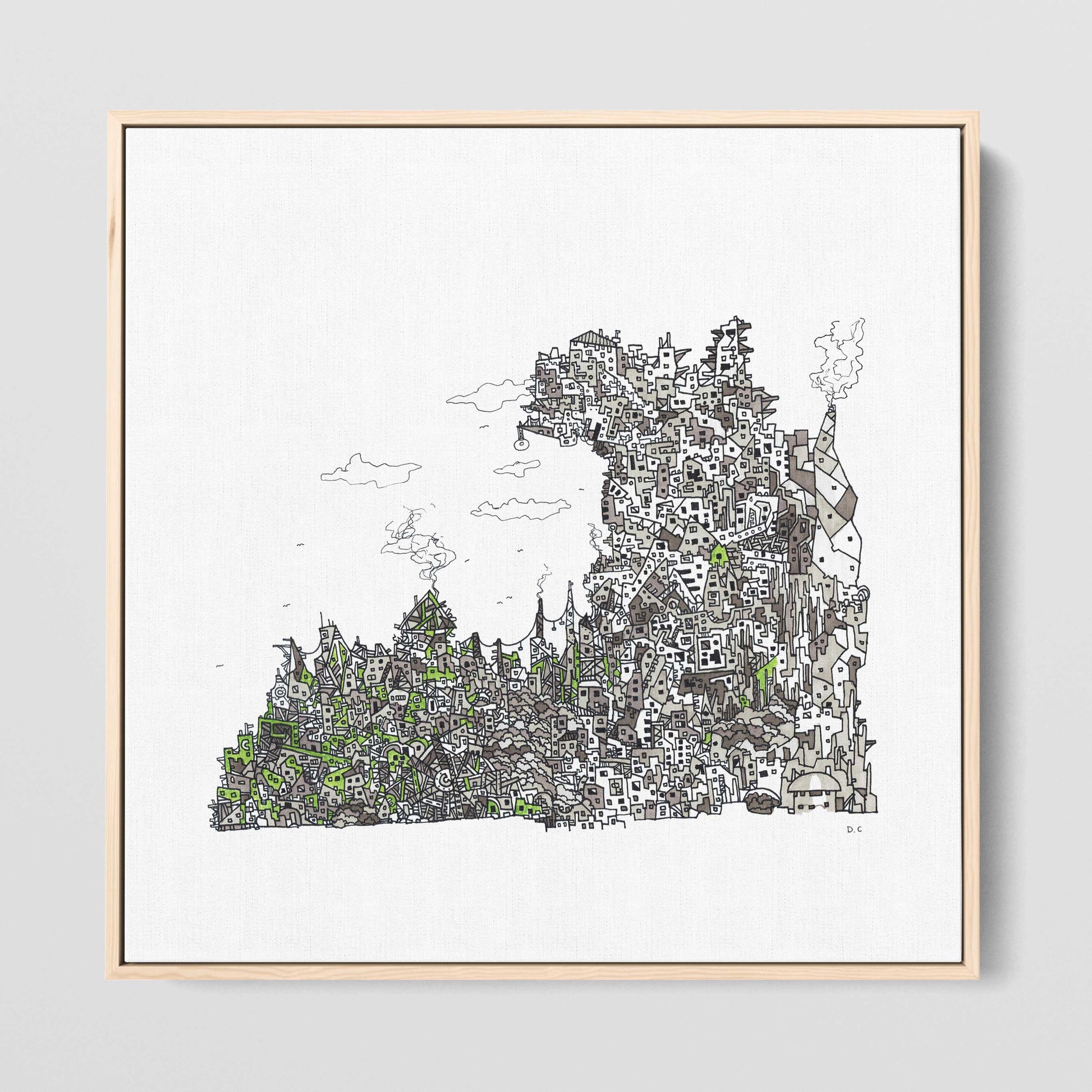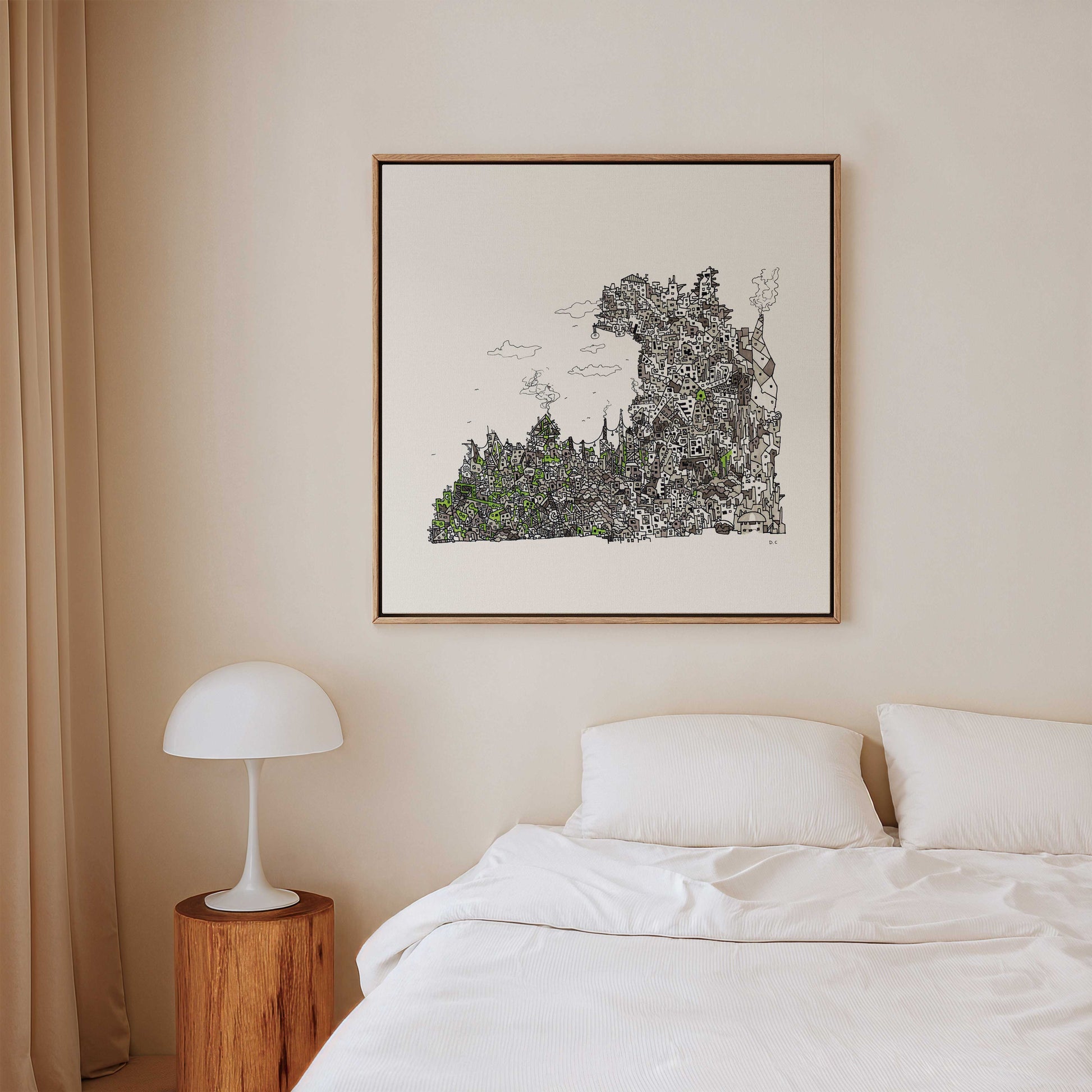 Varje canvas edition levereras färdigmonterad med diskret, dold upphängning – redo att ta plats i rummet.
